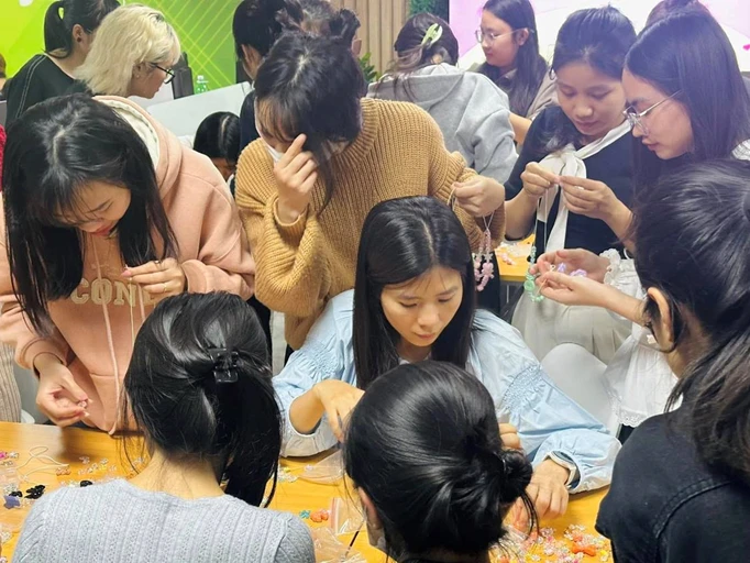 Hoạt động xâu vòng thủ công không chỉ mang đến những khoảnh khắc vui vẻ mà còn giúp các chị em tự tay tạo ra những món trang sức mang dấu ấn cá nhân.