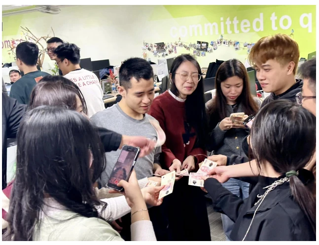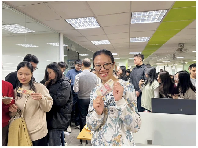 Buổi “Khai xuân” thêm phần hấp dẫn hơn với màn phát lì xì may mắn từ các anh chị Ban lãnh đạo.