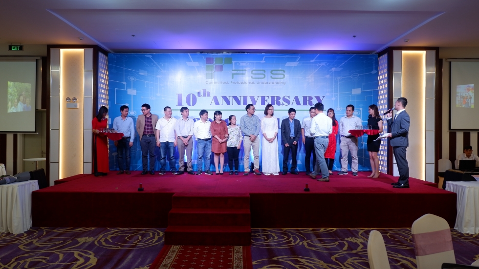 Buổi tiệc được bắt đầu lúc 9h sáng, bằng buổi tọa đàm nhìn lại hành trình 10 năm của FSS, từ những ngày đầu mới thành lập, gặp nhiều khó khăn, những ngày làm việc miệt mài để hoàn thành đúng tiến độ dự án với khách hàng: