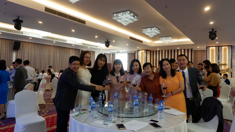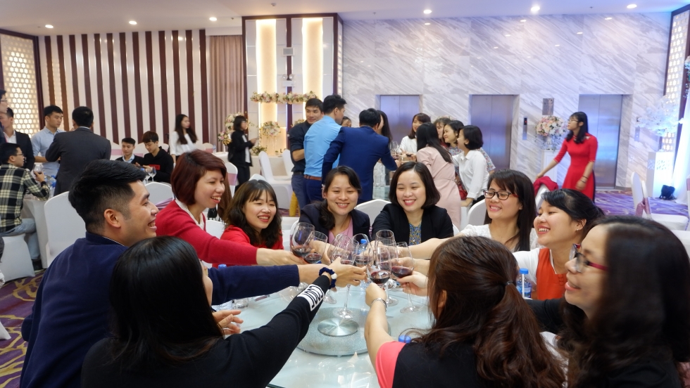 Tất cả các thành viên trong công ty, các khách hàng và đối tác cùng nhau chụp ảnh lưu niệm sau bữa tiệc kỉ niệm.