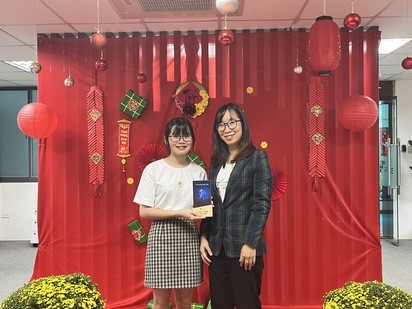 Chị Nguyễn Hồng Linh (TT Ngân hàng) nhận giải Măng non Xuất sắc